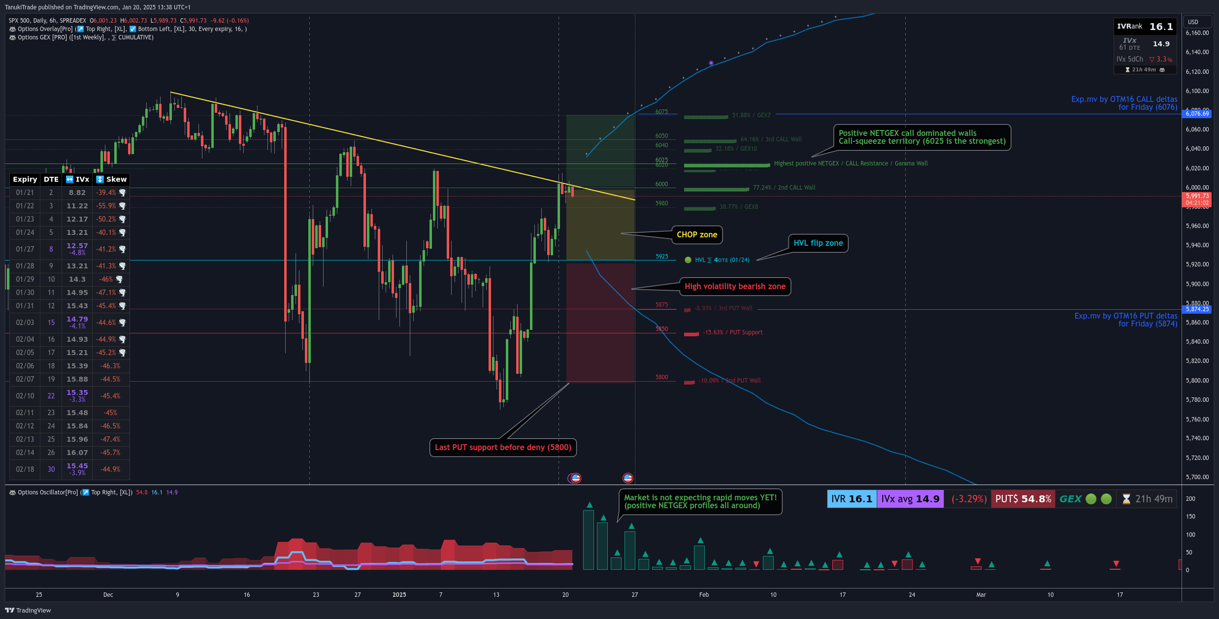 Below 5925: The high-volatility zone begins, with 5800–5850 acting as our major support/resistance level characterized by heavy put dominance.